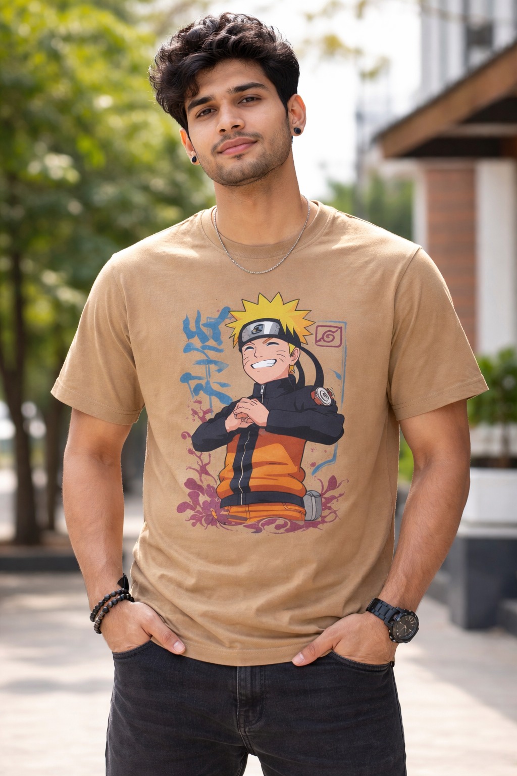 The standout feature of this t-shirt is its vibrant and high-quality Naruto graphic print. The design is detailed and long-lasting, ensuring that it retains its color and sharpness even after multiple washes. The unique camel color adds a premium touch and sets it apart from regular t-shirts, giving you a more refined and fashionable appearance.